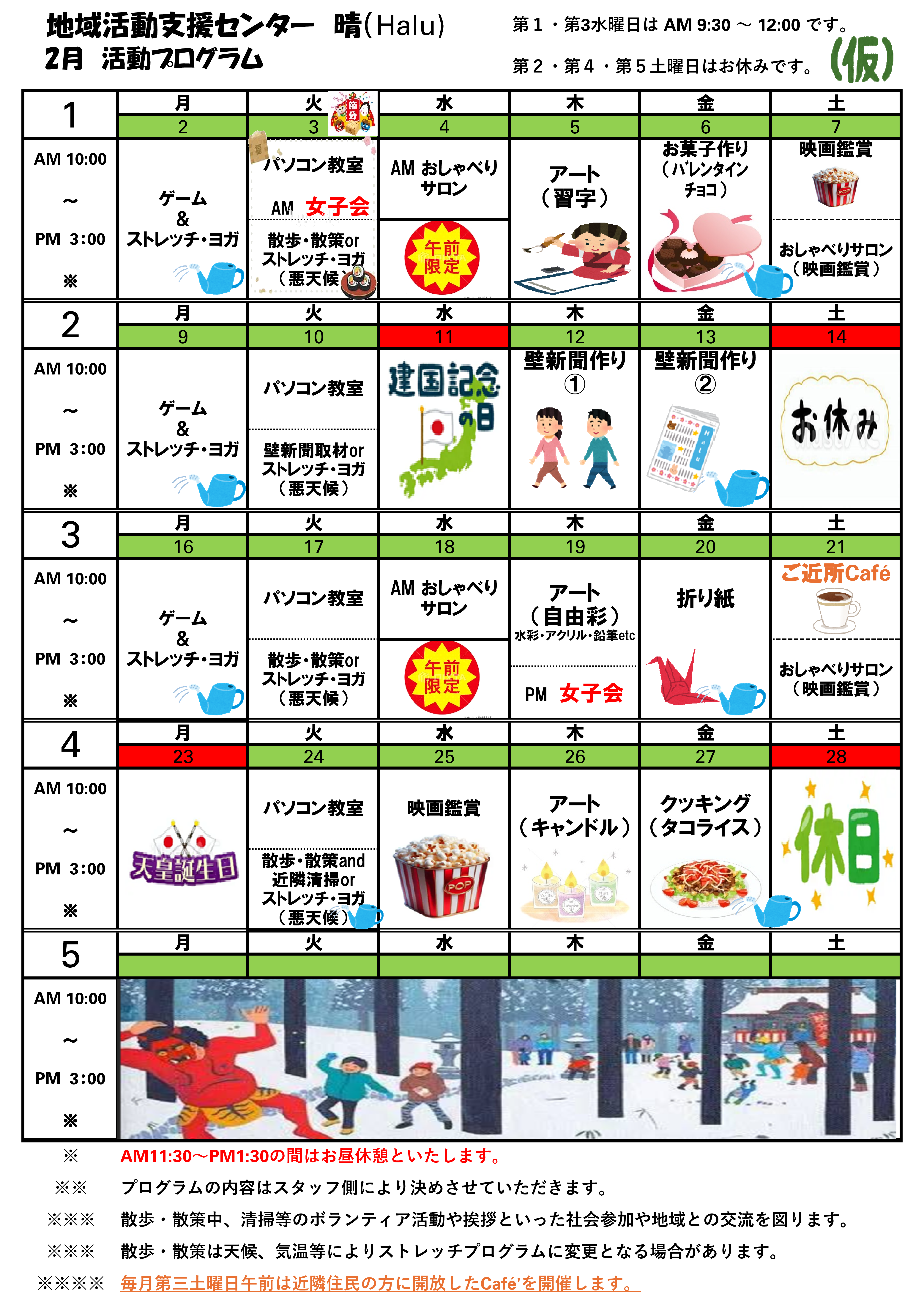 (仮)2月活動プログラム(プログラムの内容は随時更新予定です。)