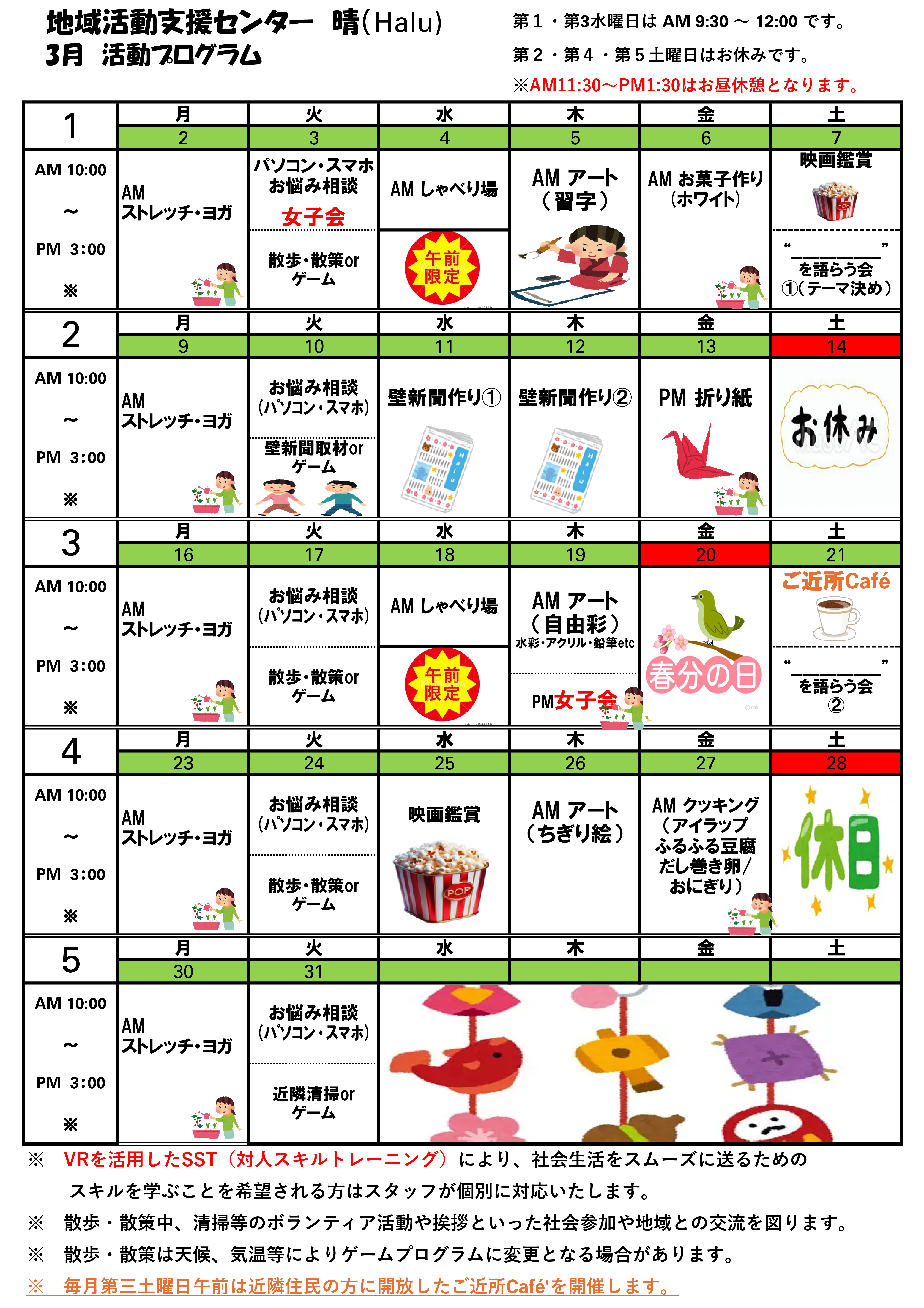 3月活動プログラム(プログラムの内容は随時更新予定です。)